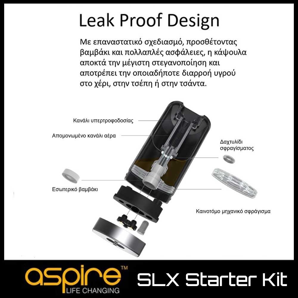 Aspire SLX Starter Kit – Αρχικό Σετ Ηλεκτρονικού τσιγάρου με προγεμισμένες κάψουλες