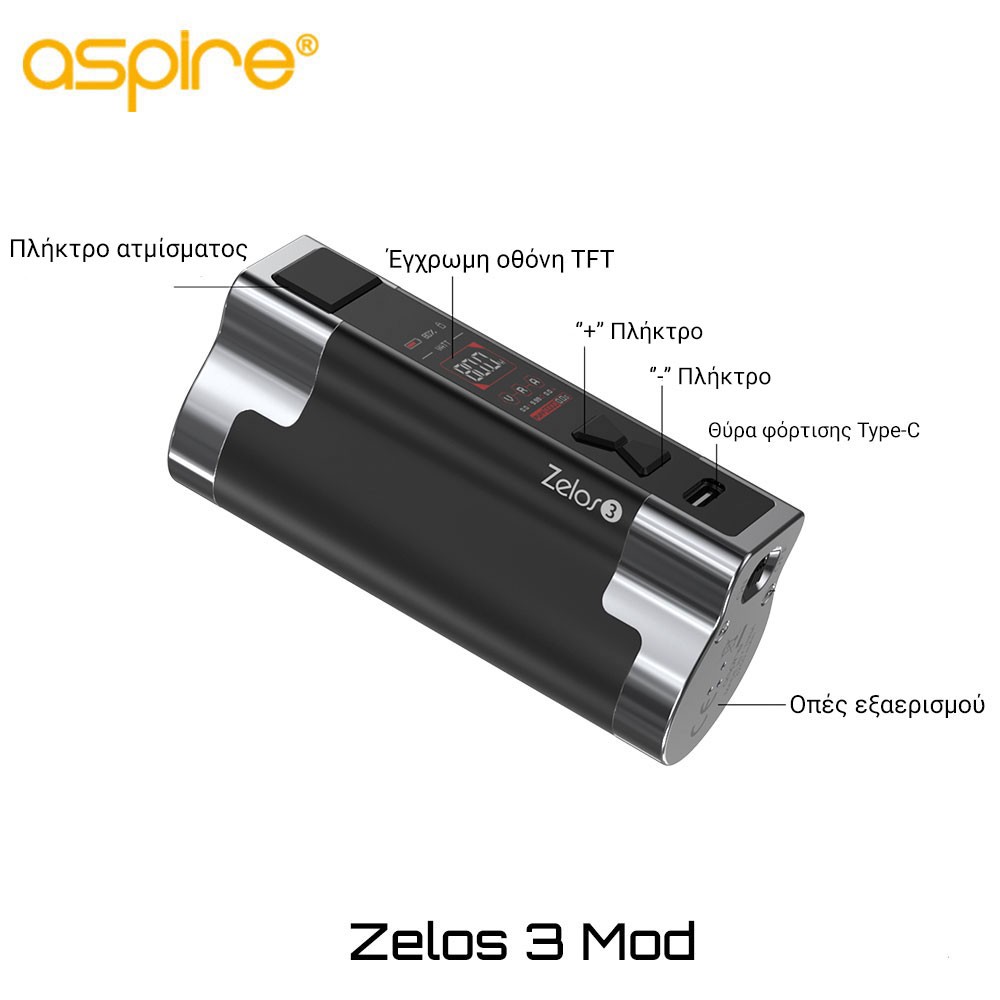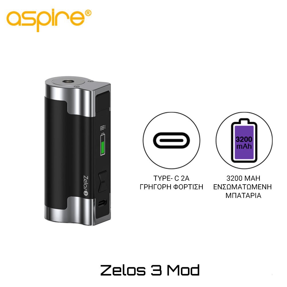 Aspire Zelos 3 Mod – Συσκευή ρύθμισης ισχύος και θερμοκρασίας με ενσωματωμένη μπαταρία
