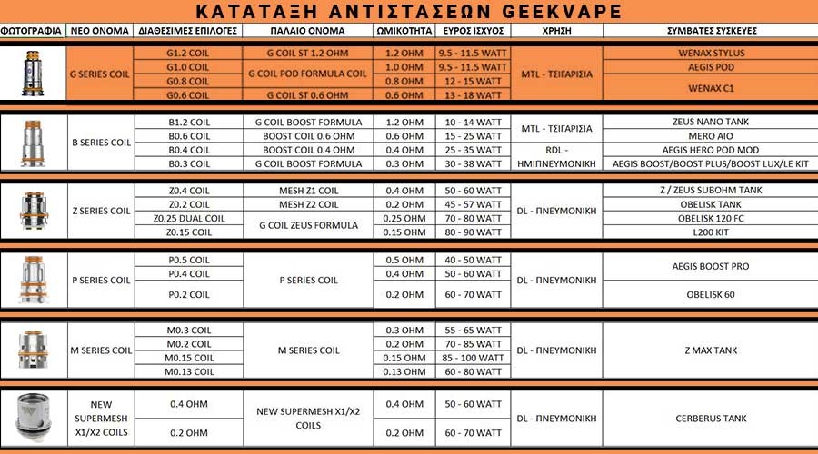 - Συμβατές συσκευές και ατμοποιητές : GeekVape Aegis Pod, GeekVape Wenax C1 Kit, GeekVape Wenax Stylus Pod Kit, GeekVape G18 Kit