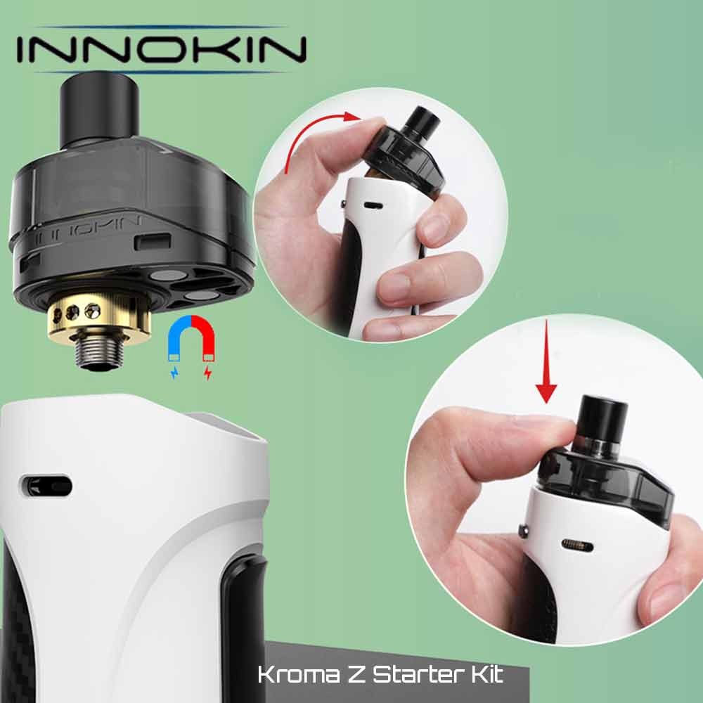 Το Kroma-Z της Innokin αποτελεί το συνδυασμό της κλασικής πλέον ατμιστικής εμπειρίας Innokin Z (Zenith/Zlide) με την απλότητα ενός All-in-One / Pod ηλεκτρονικού τσιγάρου! Καμπυλωτός σχεδιασμός, ικανοποιητική χωρητικότητα (4.5ml), τεράστια ενσωματωμένη μπαταρία (3000mAh) και ισχυρή πλακέτα που αποδίδει έως 40W αποτελούν τα βασικά χαρακτηριστικά ενός Pod Kit που ήρθε για να σας κόψει το τσιγάρο μια για πάντα!