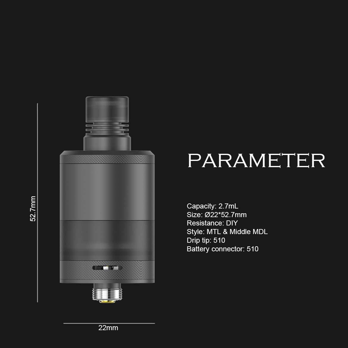 - Διαστάσεις: Ύψος 52.7 χωρίς το Drip tip