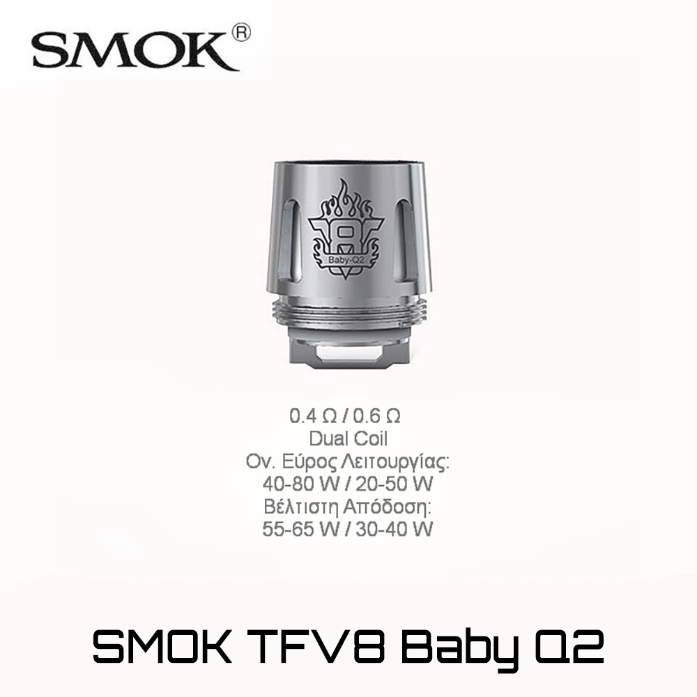 - Συμβατοί ατμοποιητές: Smok TFV8 Baby, Smok Brit Beast Tank, Vaporesso NRG (όλη η σειρά), Vaporesso Cascade (όλη η σειρά), Joyetech ProCore (όλη η σειρά), ELEAF ELLO (όλη η σειρά)