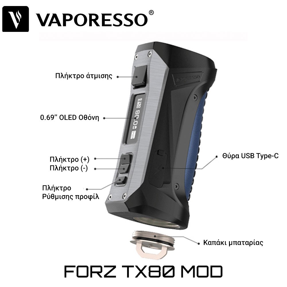 Vaporesso FORZ TX80 Mod – Συσκευή ρύθμισης ισχύος και θερμοκρασίας