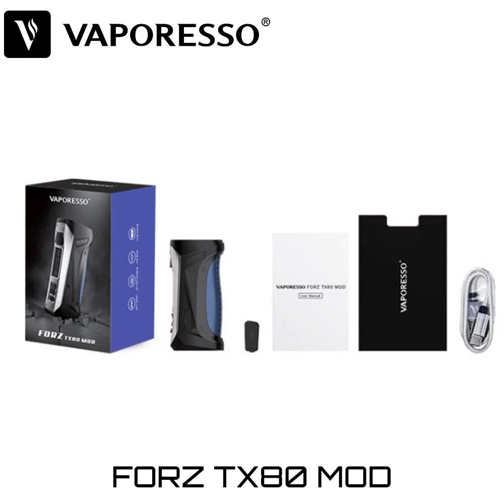 - Η συσκευασία του Vaporesso FORZ TX80 Mod δεν περιλαμβάνει μπαταρίες 18650. Οι κατάλληλες μπαταρίες πρέπει να έχουν δύναμη εκφόρτισης (Discharge rate) τουλάχιστον 20A ή μεγαλύτερη.